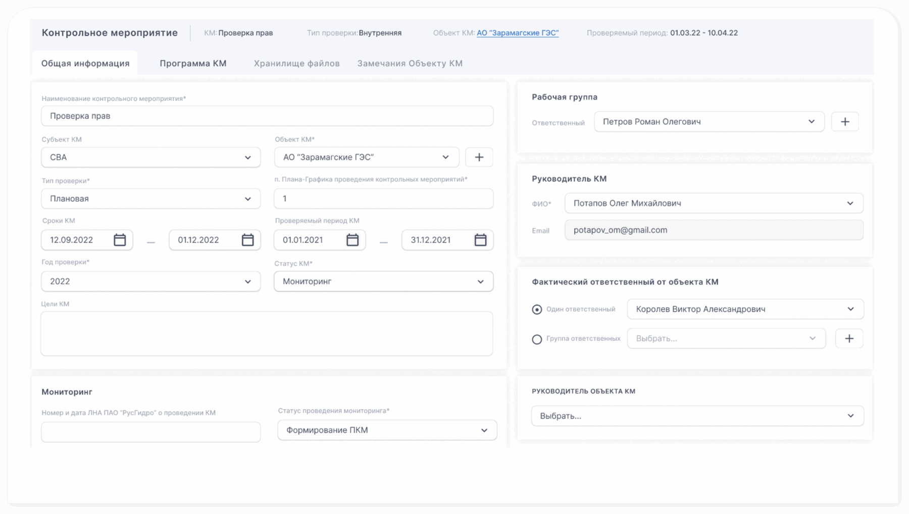 Внедрение системы управления проверочной деятельностью позволило автоматизировать управление и координацию процесса проверки и аудита внутренних и внешних мероприятий в организации.